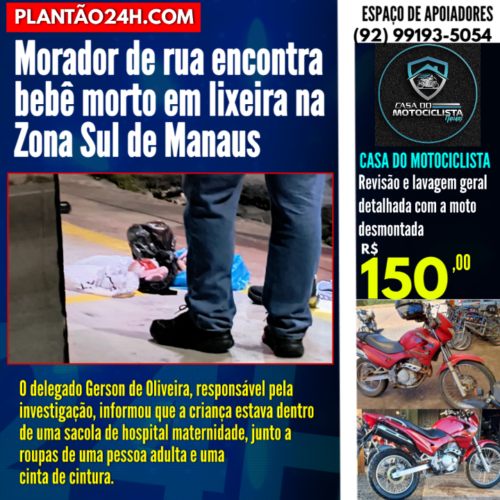 Um crime chocante foi descoberto na manhã desta terça-feira (19) na Zona Sul de Manaus. Um morador em situação de rua, enquanto revirava uma lixeira em busca de comida, encontrou o corpo de um bebê de aproximadamente seis meses de vida. O caso ocorreu na esquina da Avenida Aires de Almeida com a Avenida Silves.